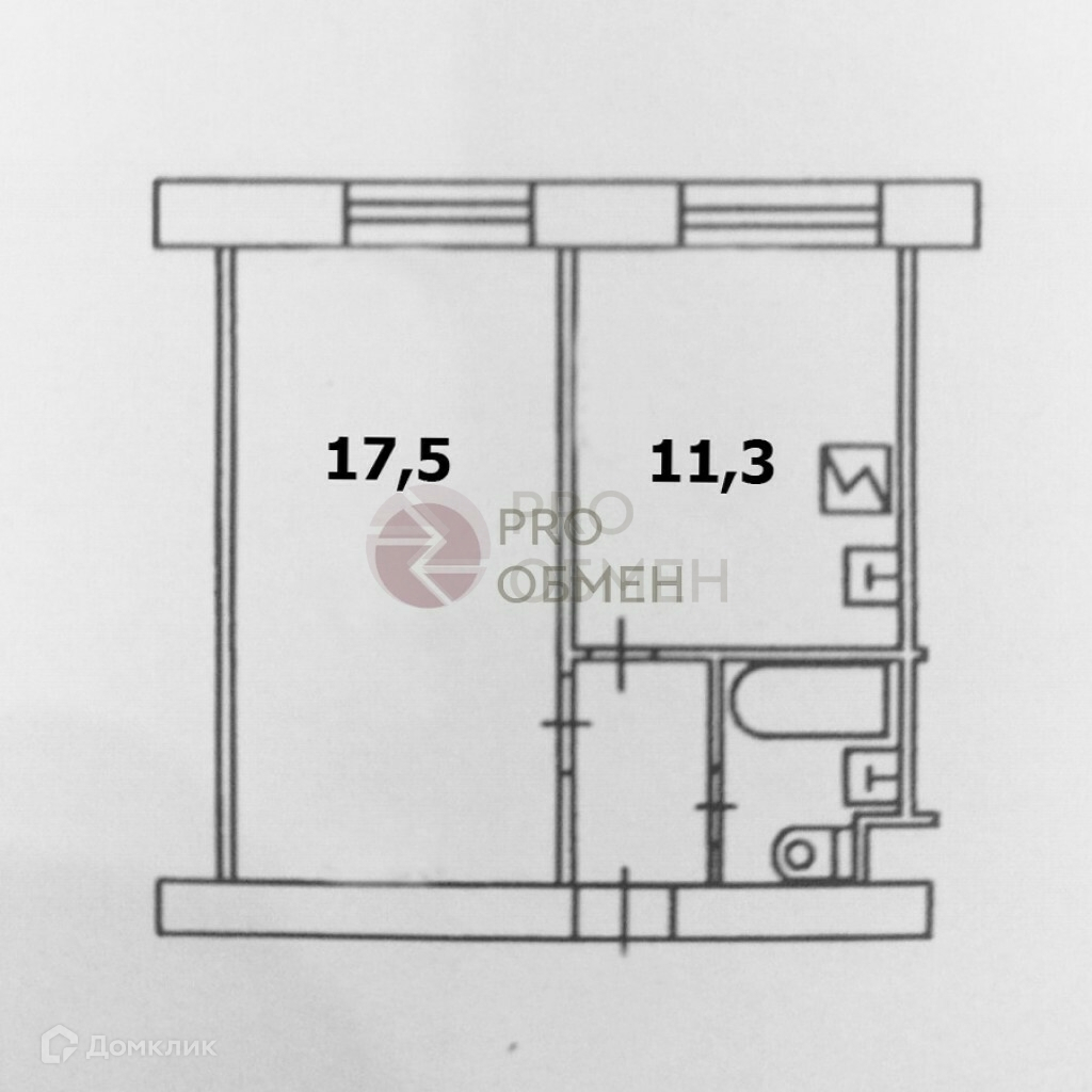 Общая площадь - 35,2 кв.м