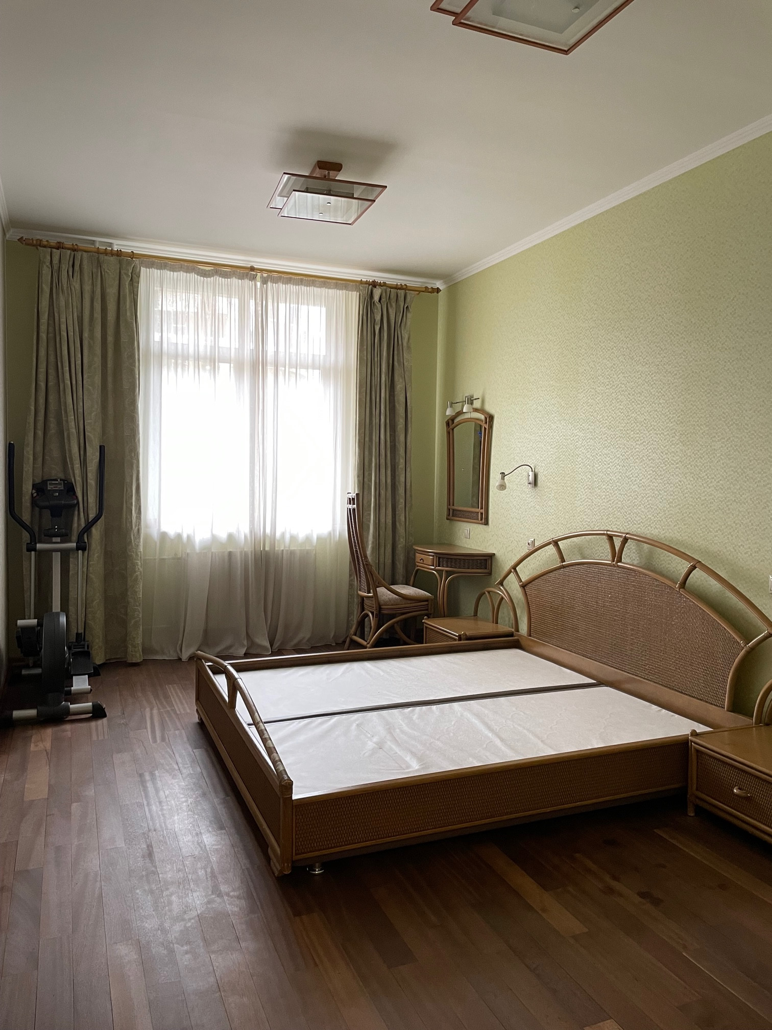 На кухне гарнитур с фасадом из натурального дерева, современная встроенная техника - варочная керамическая панель, винный шкаф, посудомойка, СВЧ, духовка. Кондиционеры во всех комнатах.