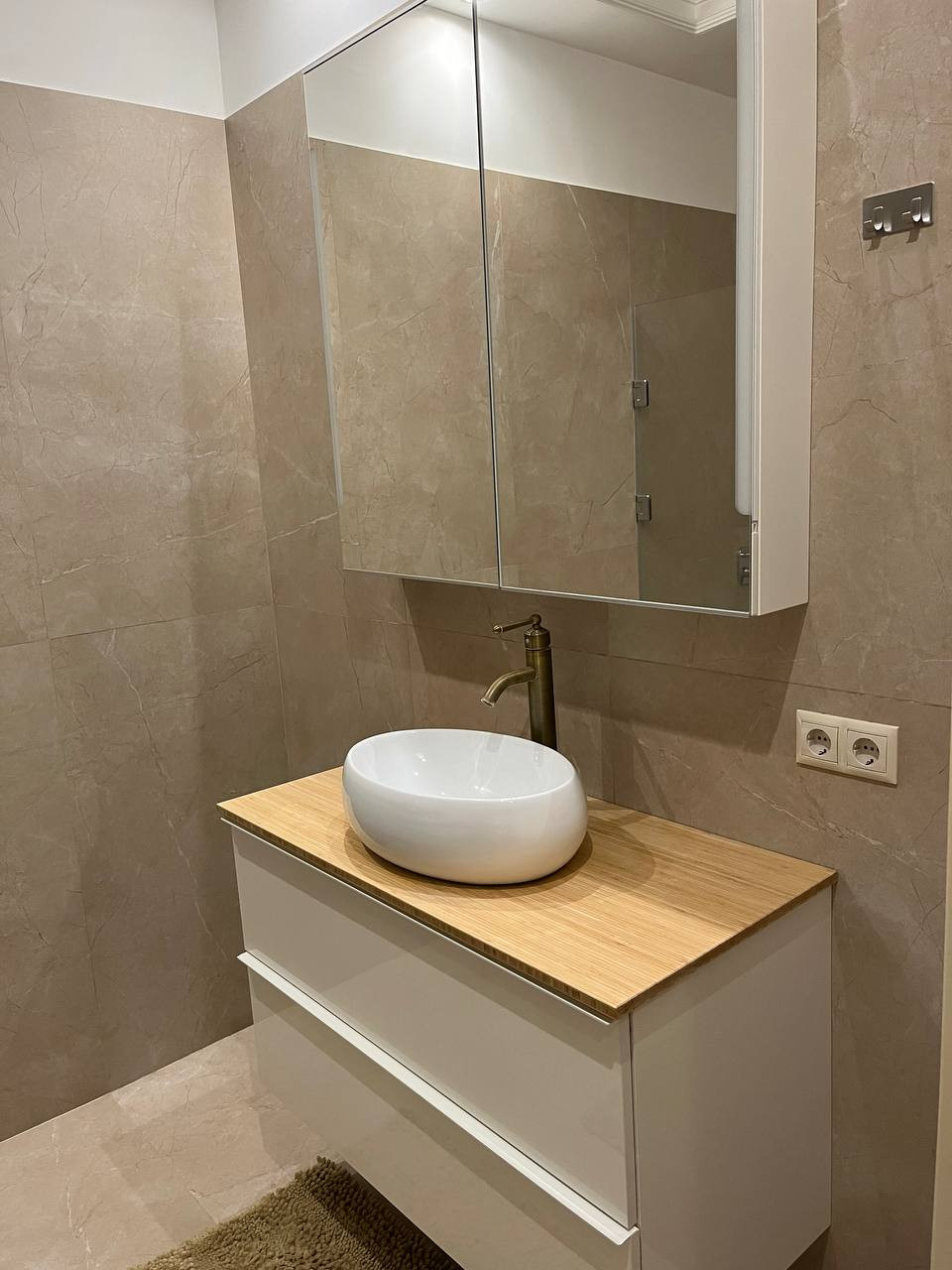 -  пол зонирован:  плитка с подогревом