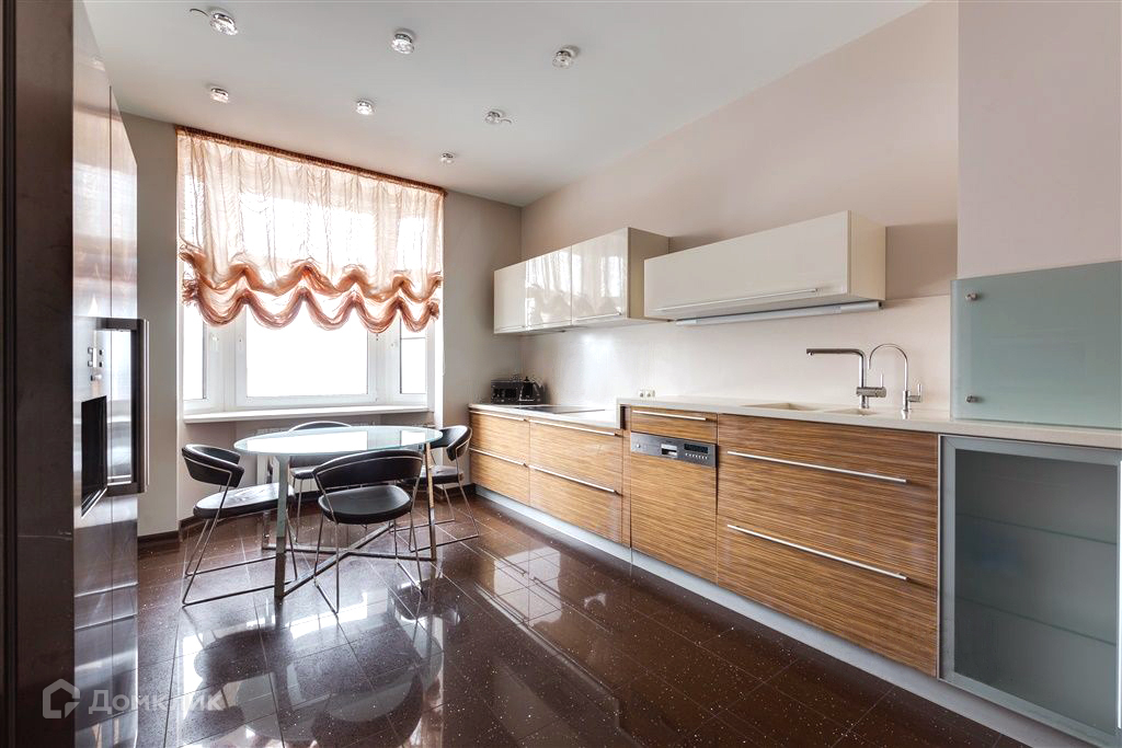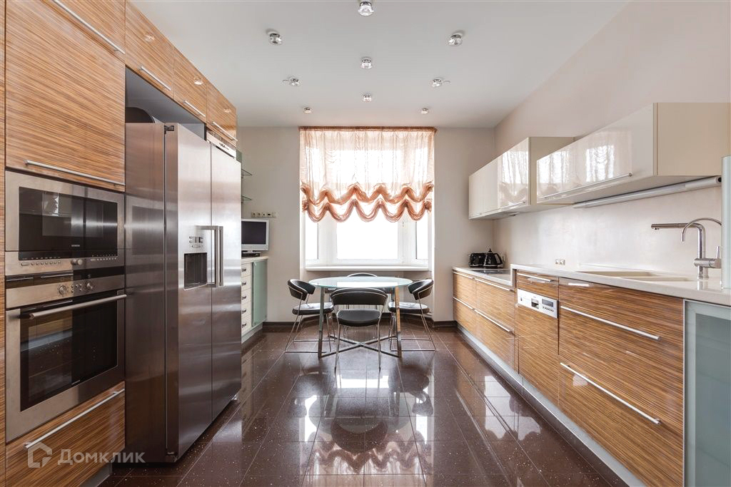 В квартире выполнен из качественных материалов: на полу паркет из массива оливы, теплый пол в санузлах. Межкомнатные двери из шпона зебрано. Встроенная система вентиляции и кондиционирования, встроенный кухонный гарнитур с техникой Siemens.