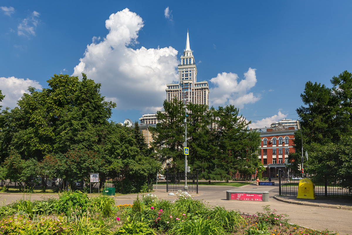 Под домом предусмотрен пятиуровневый подземный паркинг. Охраняемая территория, круглосуточное видеонаблюдение, консьерж-сервис. Во дворе - большая детская площадка, фонтан, свой яблоневый сад с прогулочными зонами и лавочками для отдыха. На первом этаже комплекса размещены салоны красоты, дом быта, фитнес с бассейном.