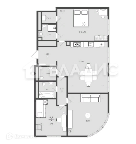 Общая площадь 88.6 м2