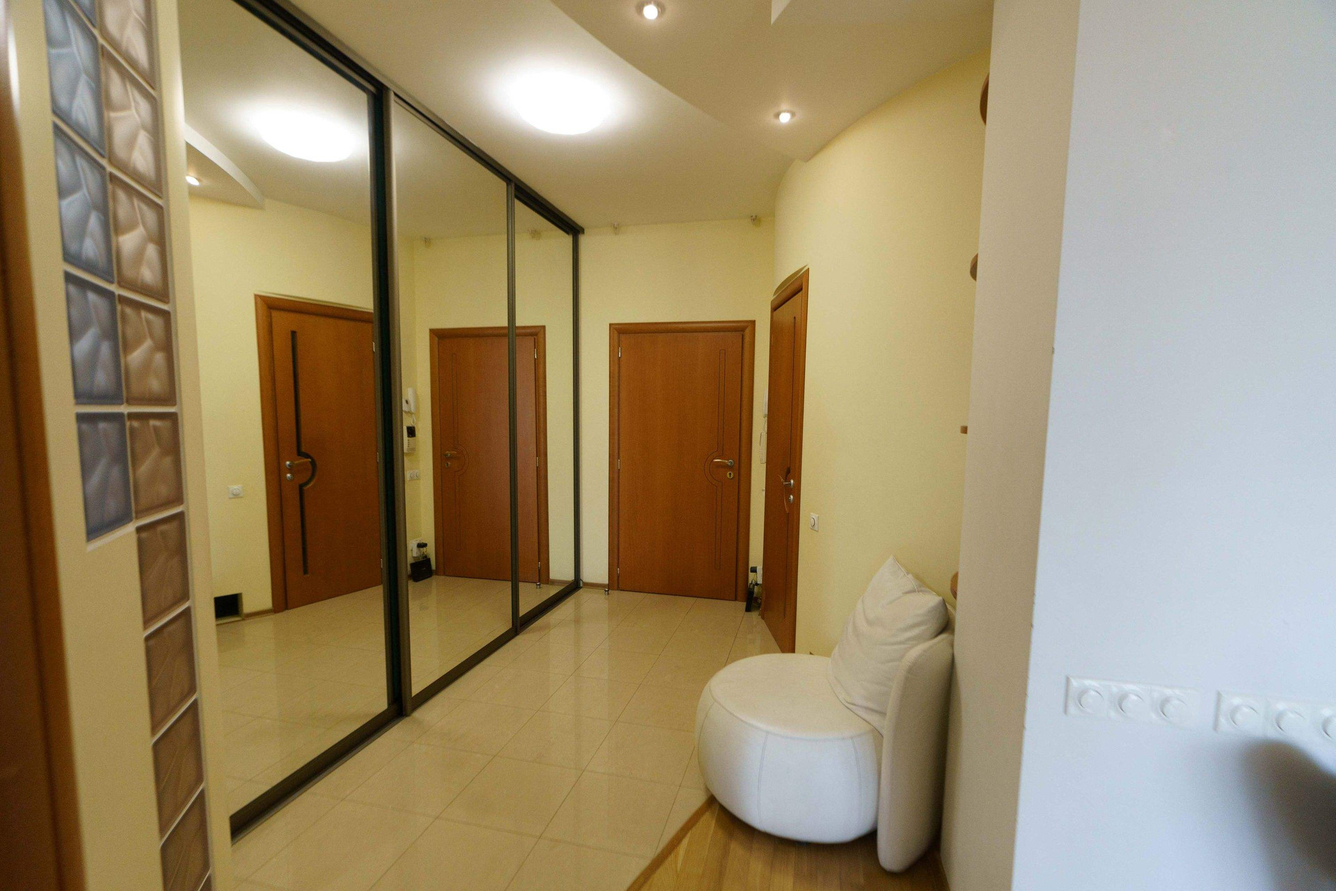 Продаётся 4-х квартира. Дом бизнес класса, монолитно-кирпичный с огороженной охраняемой территорией и подземным паркингом (лифт опускается в паркинг). Гостиная 37 м2, 3 спальни 21+14+14 м2, кухня 8 м2, 2 с/у, 2 гардеробных, кладовая, большой холл 10 м2. Дорогостоящий современный ремонт. Квартира продаётся со встроенной кухней и современной бытовой техникой, встроенными шкафами купе и всей необходимой мебелью. Свободная продажа!