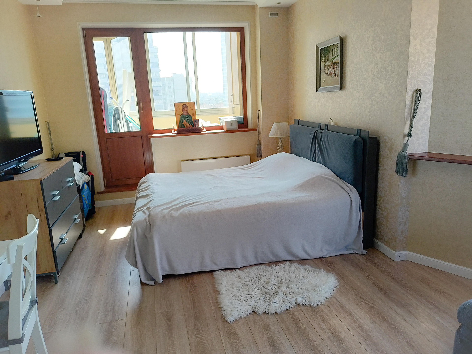 Квартира общей площадью 63 м имеет две раздельные комнаты 21 и 15 м, большой коридор и кухню 13 м, красиво оформленную эркерным окном. В квартире имеются две лоджии. Все материалы отделки и мебели очень качественные. Мебель и техника частично остаются будущим владельцам. Высокий видовой этаж: из окон квартиры открывается прекрасный вид на парк Дружбы.