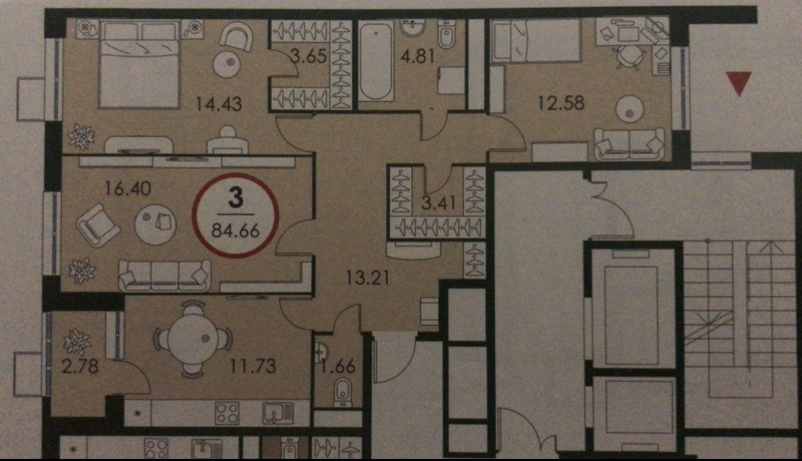 Общая площадь 84.3 м2