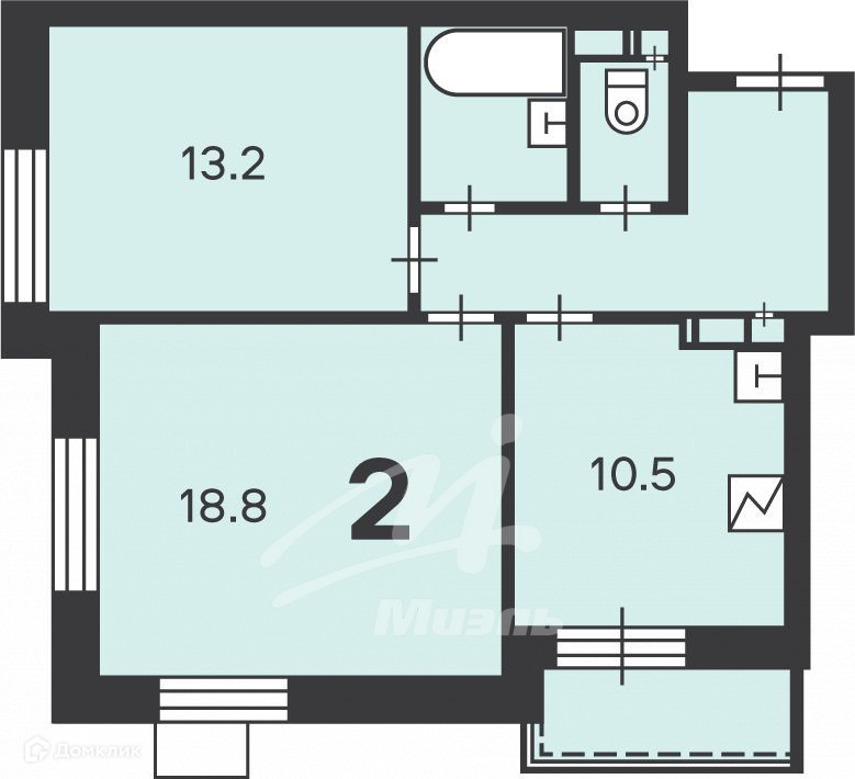 Количество комнат 2