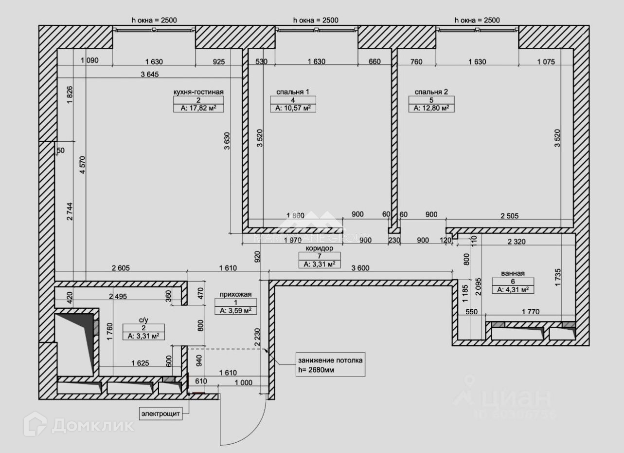 Общая площадь 55.7 м2