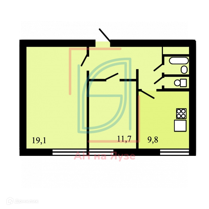 Жилая площадь 30.8 м2