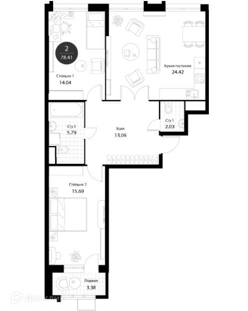 Общая площадь 77.8 м2
