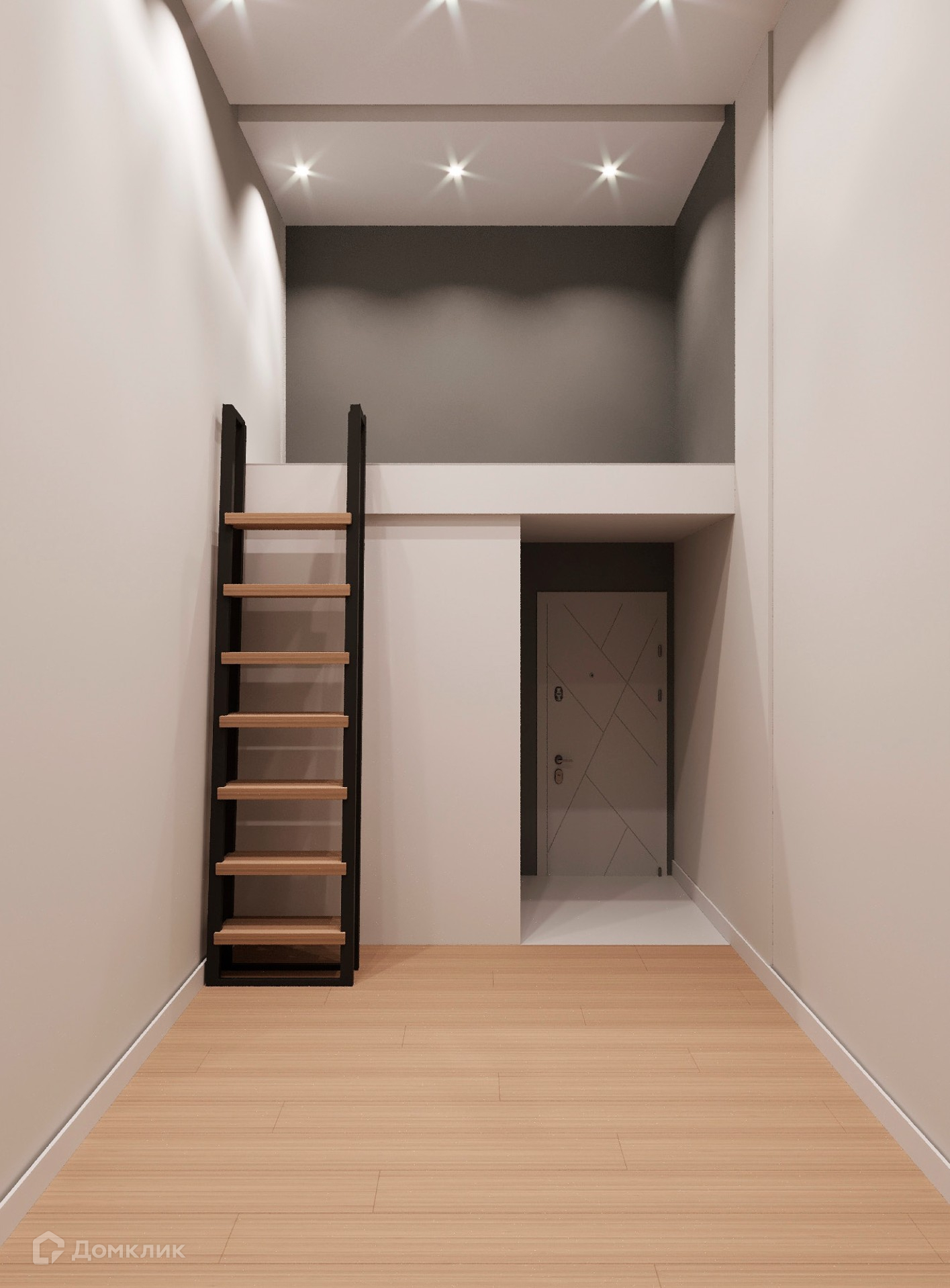 В апартаментах высокие потолки. Это отличное пространство для дизайнерских решений. Высота потолков позволяет увеличить жилую площадь за счет антресоли, которая будет уже установлена. Высота антресоли 180 см. Она узаконена и входит в общую площадь. Вы можете организовать как спальное место, так и дополнительное рабочее место, у вас будет много места для хранения вещей.