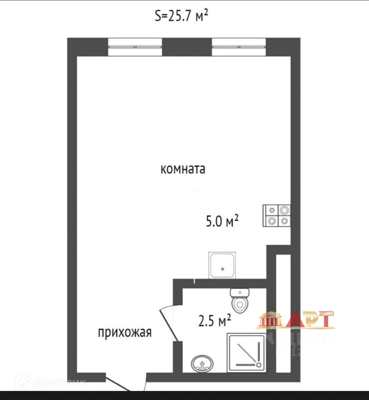 Общая площадь 25.7 м2