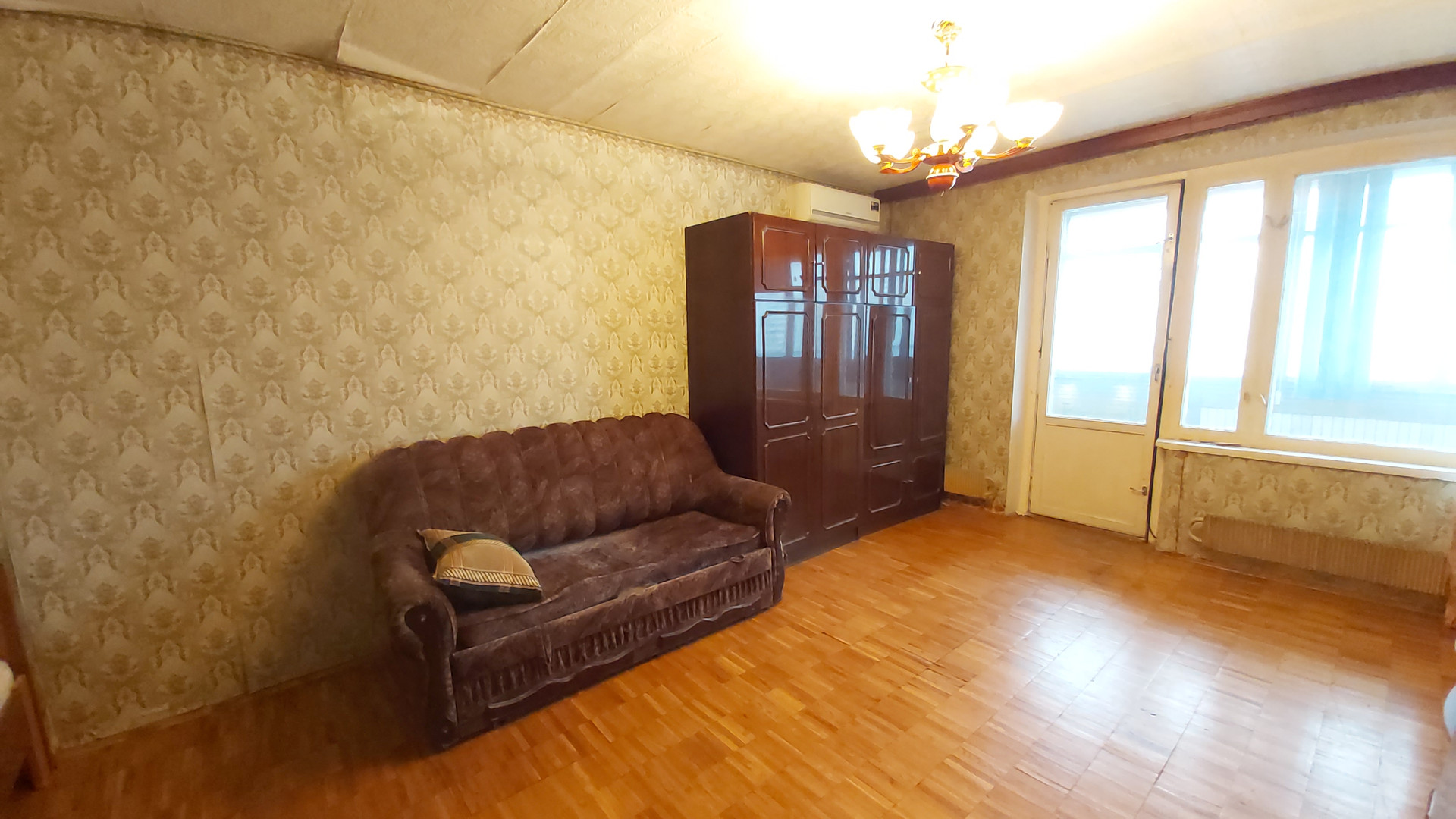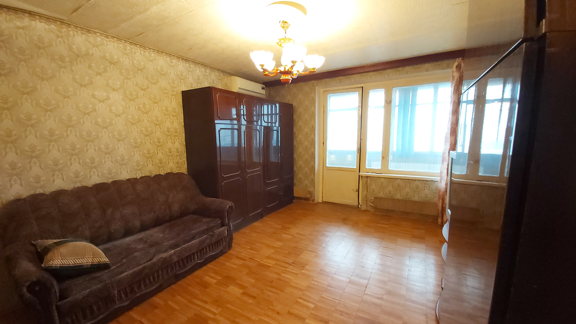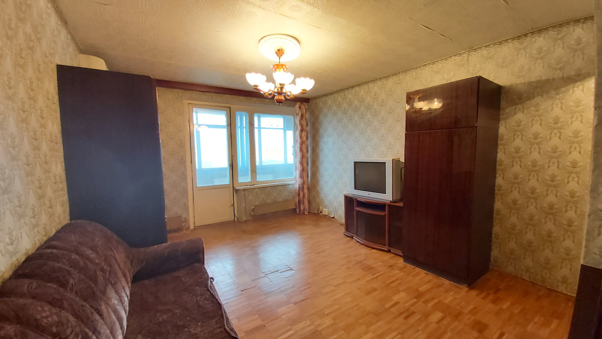 Просторная кухня (10м2), комната (19м2), большая лоджия на кухню и комнату.