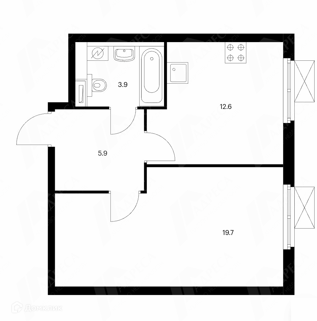 Жилая площадь 12.4 м2