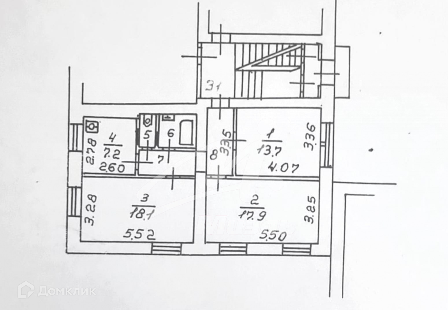 Жилая площадь 49.7 м2
