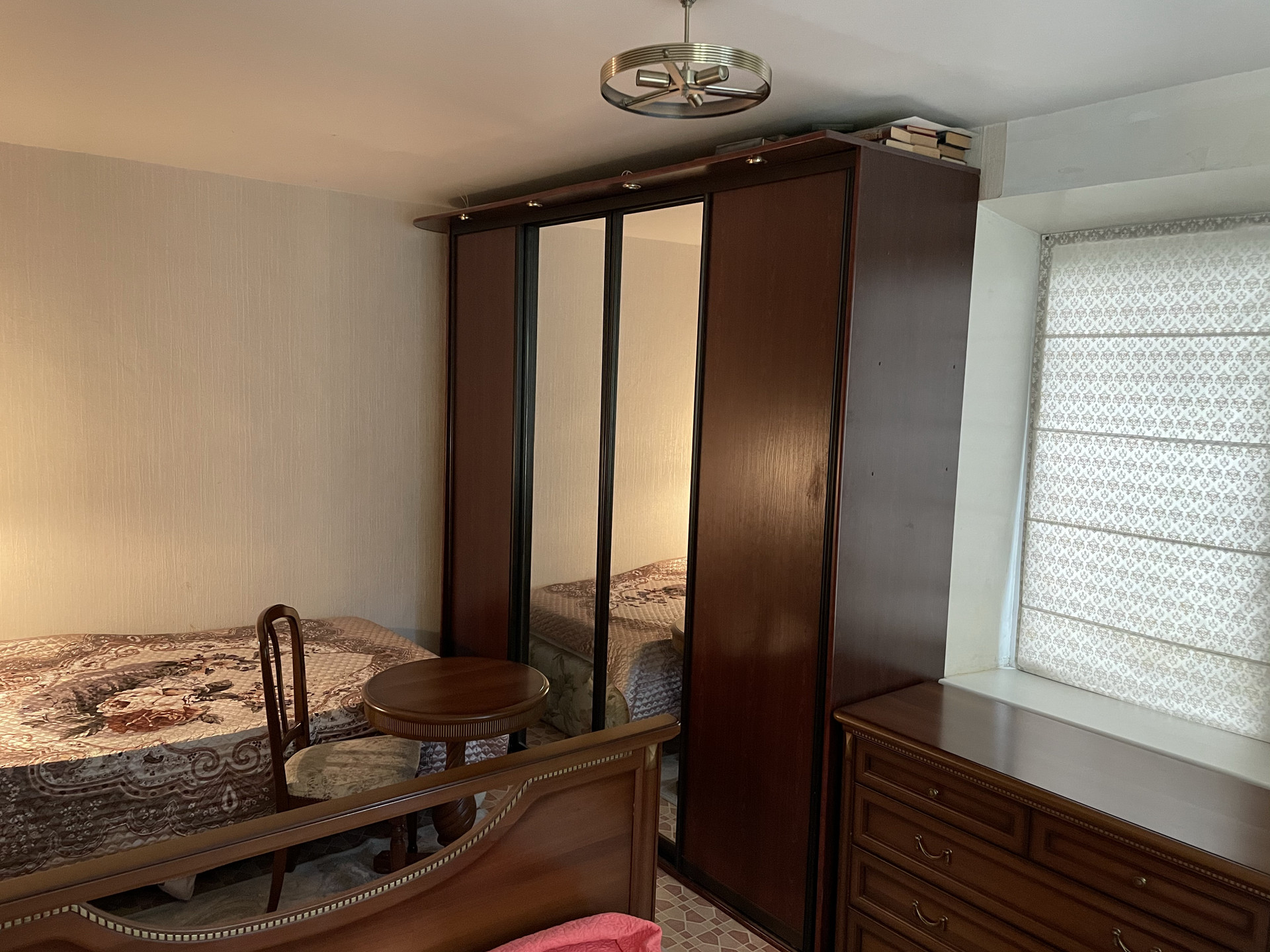 Комната светлая с двумя окнами.