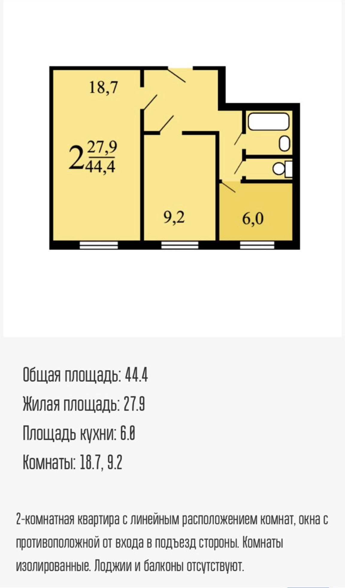 Общая площадь 44.3 м2