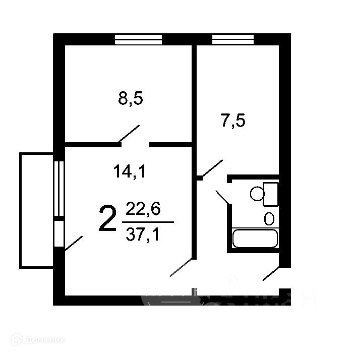 Жилая площадь 22.2 м2
