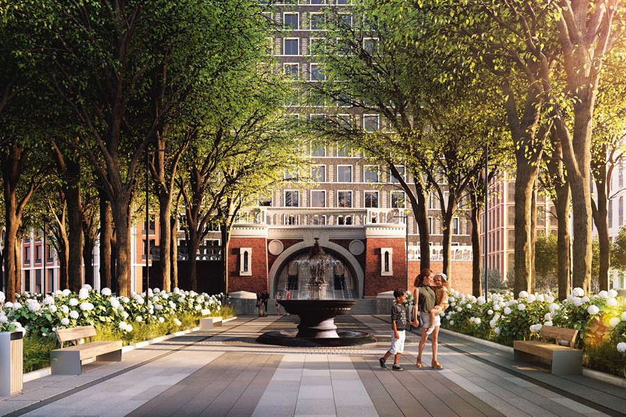 Собственная территория площадью 7.7 га с ландшафтным дизайном, сочетающая комфорт 21 века и великолепие 19 века. Дворы без машин. Пропускная система, видеонаблюдение, наземная парковка для гостей и лиц с ограниченными двигательными возможностями.