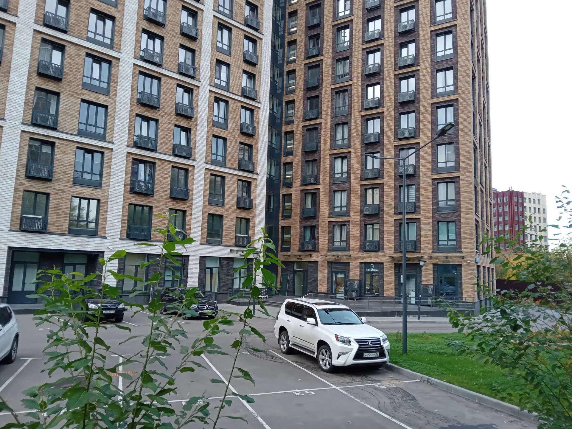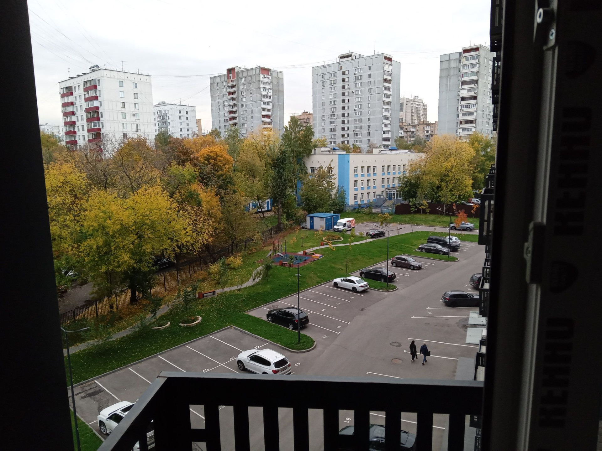 Вид из окна во двор. Территория двора закрытая. Парковка во дворе и подземная.