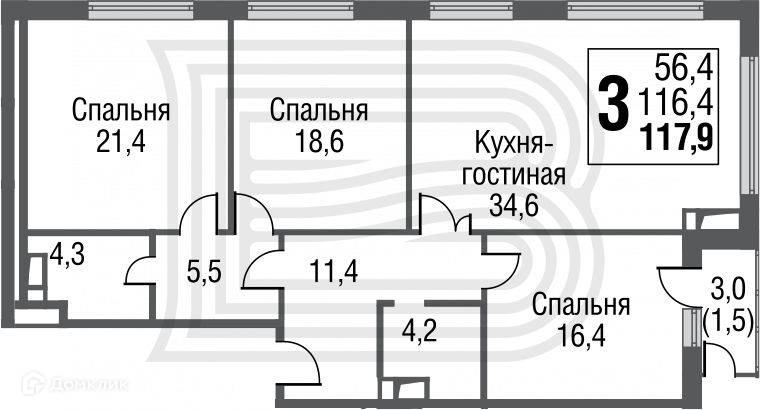 Общая площадь 117.9 м2