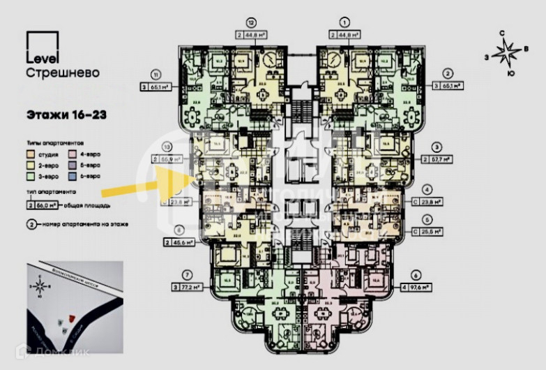 Арт. 34386204 Предлагаем Вашему вниманию прекрасные видовые 2х-комн. апартаменты евроформата в ЖК бизнес-класса Level Стрешнево!