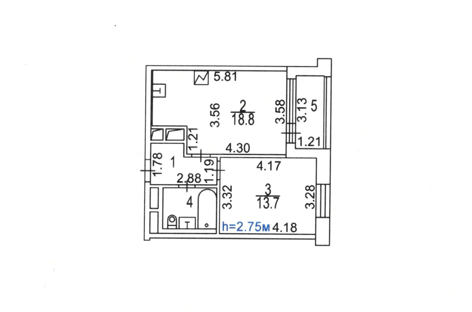 Оптимальная планировка: общая пл. 43 кв.м, кухня- гостинная - 19 кв.м, комната изолированная 14 кв.м, сан\узел 4,1 кв. м., большая лоджия 4 кв.м. Потолки 2,75 м.