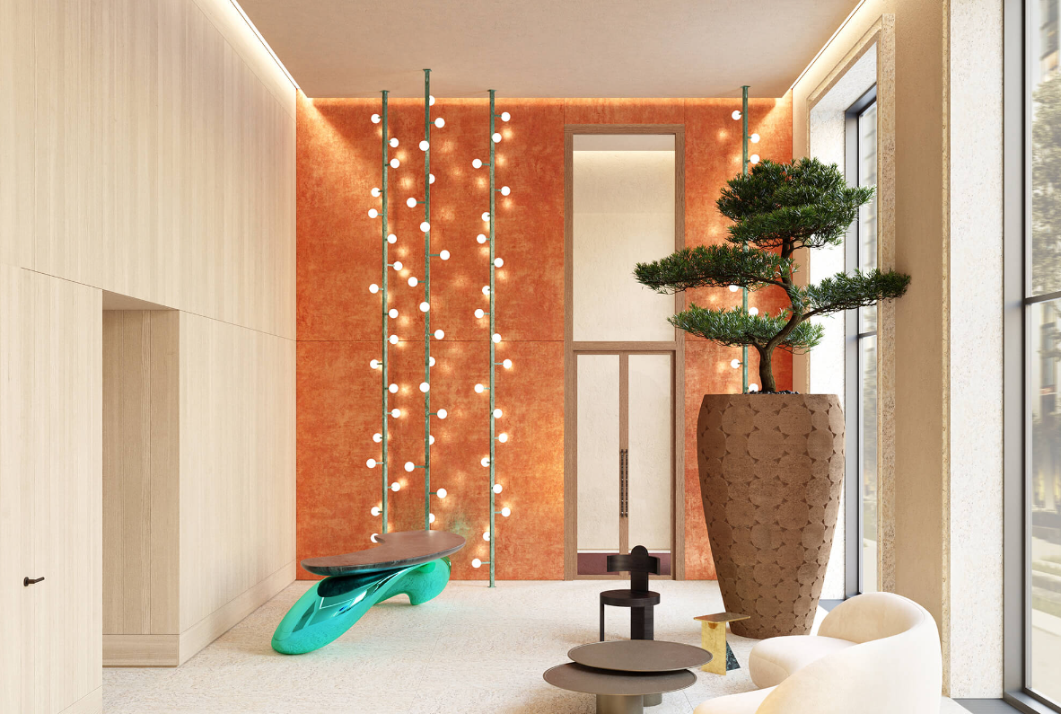 - Входная группа с колясочной и лаундж зоной.