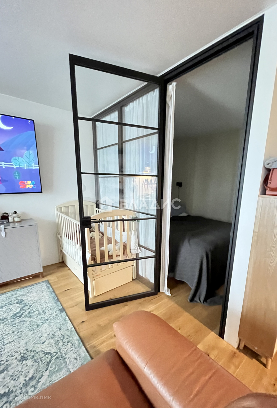 Отдельно зонирована  спальня. Покупателю останется - встроенная кухня со всей бытовой техникой, включая посудомоечную машину. Кондиционер.