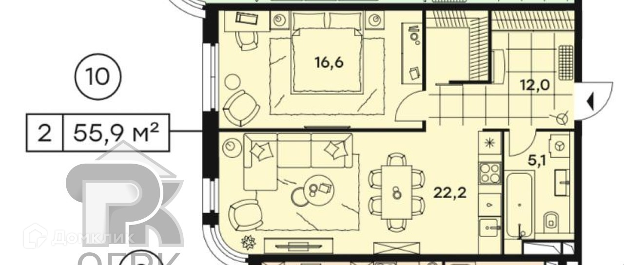 Общая площадь 56 м2