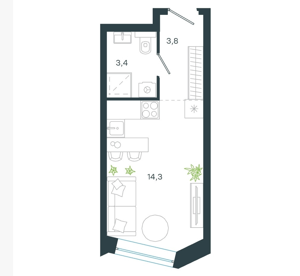 Жилая площадь 14.3 м2