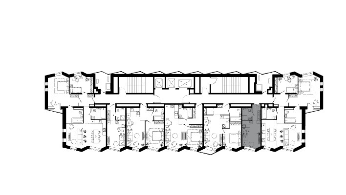Квартиры и апартаменты с отдельным входом, общая площадь от 22 до 227 метров кв, коммерческие помещения, пентхаусы с собственной террасой и потолками 6 метров.
