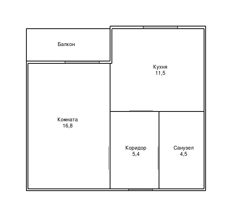 Жилая площадь 16.8 м2