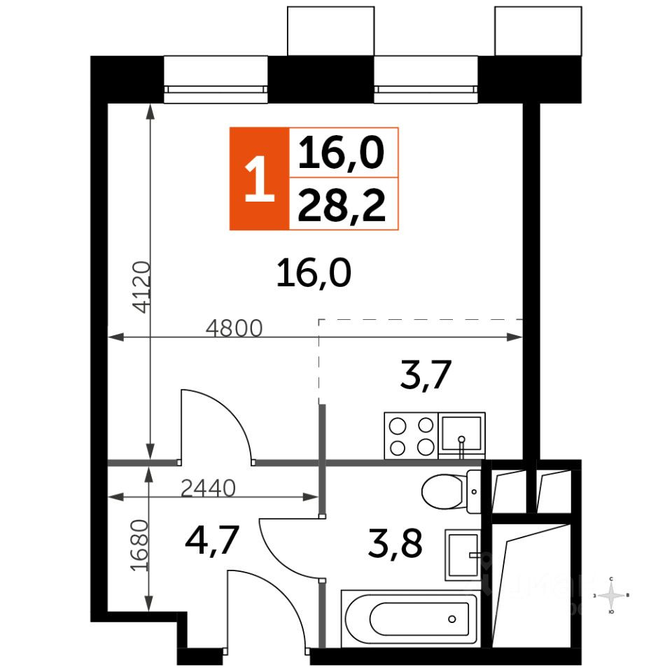Общая площадь 28.2 м2