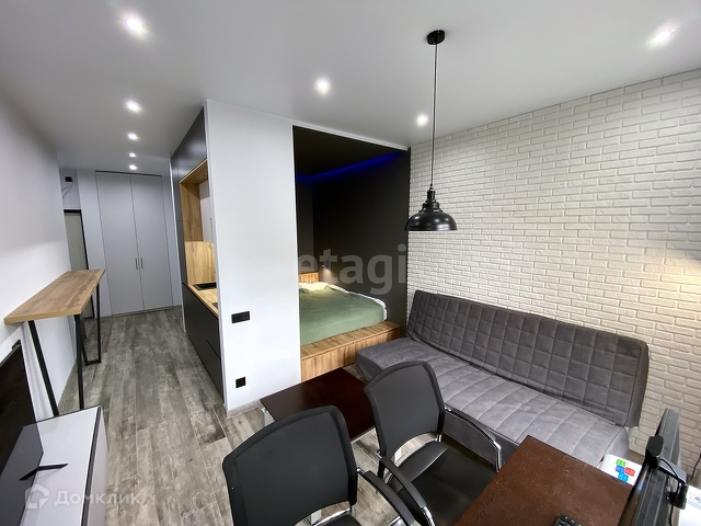 В студии выполнен ремонт по дизайн проекту. Вся мебель выполнена под заказ из высококачественных материалов, скрытые шкафы и двери, встроенная техника.Высокие потолки. Тёплый пол во всей квартире. Панорамное остекление. Установлена качественная сантехника