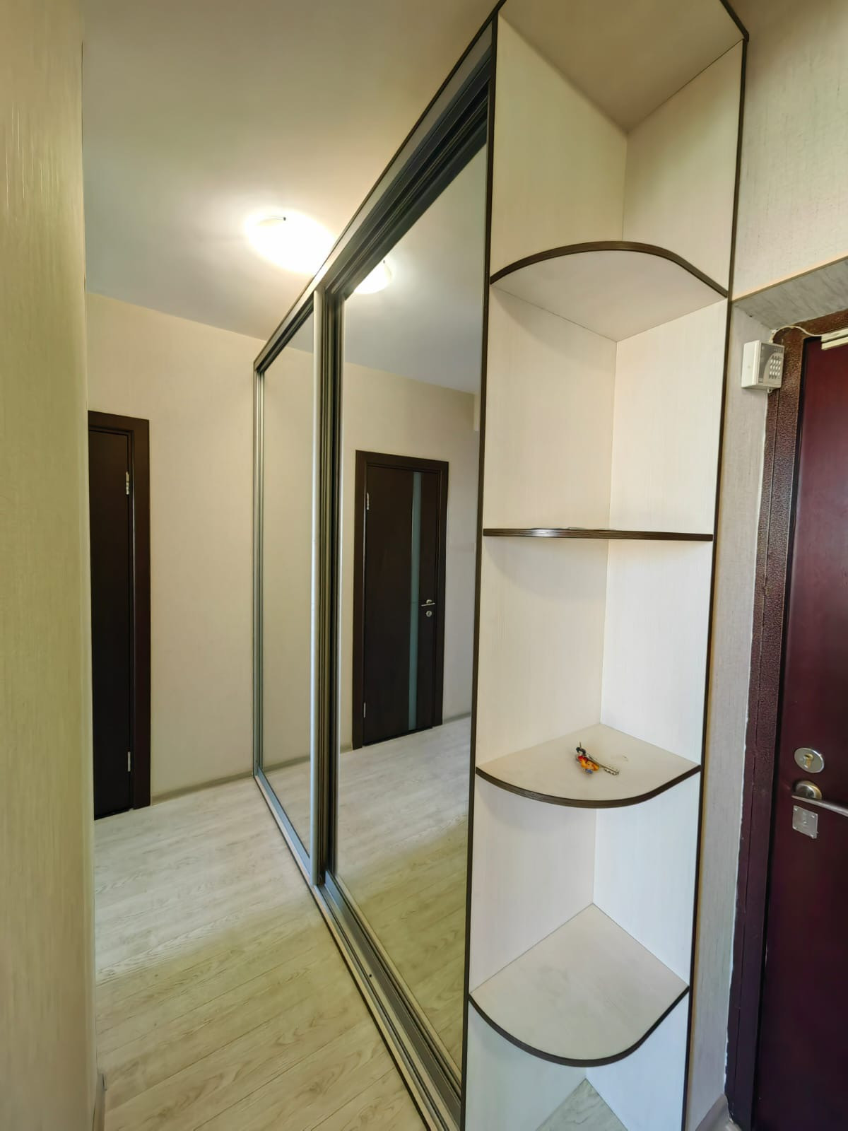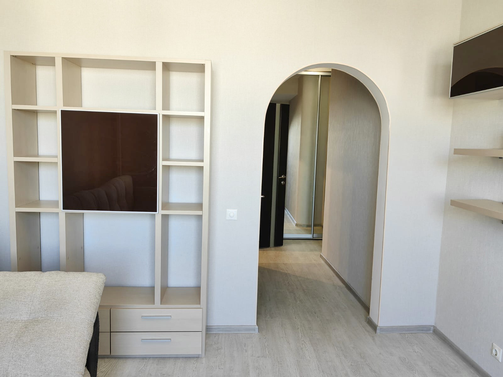 Встроенная кухня оборудована варочной панелью, духовым шкафом, вытяжкой и посудомоечной машиной, холодильник Liebherr немецкой сборки. Встроенные шкафы-купе в спальне и прихожей, кровать, диван и другая мебель, а также стиральная машина - всё остаётся и входит в стоимость.