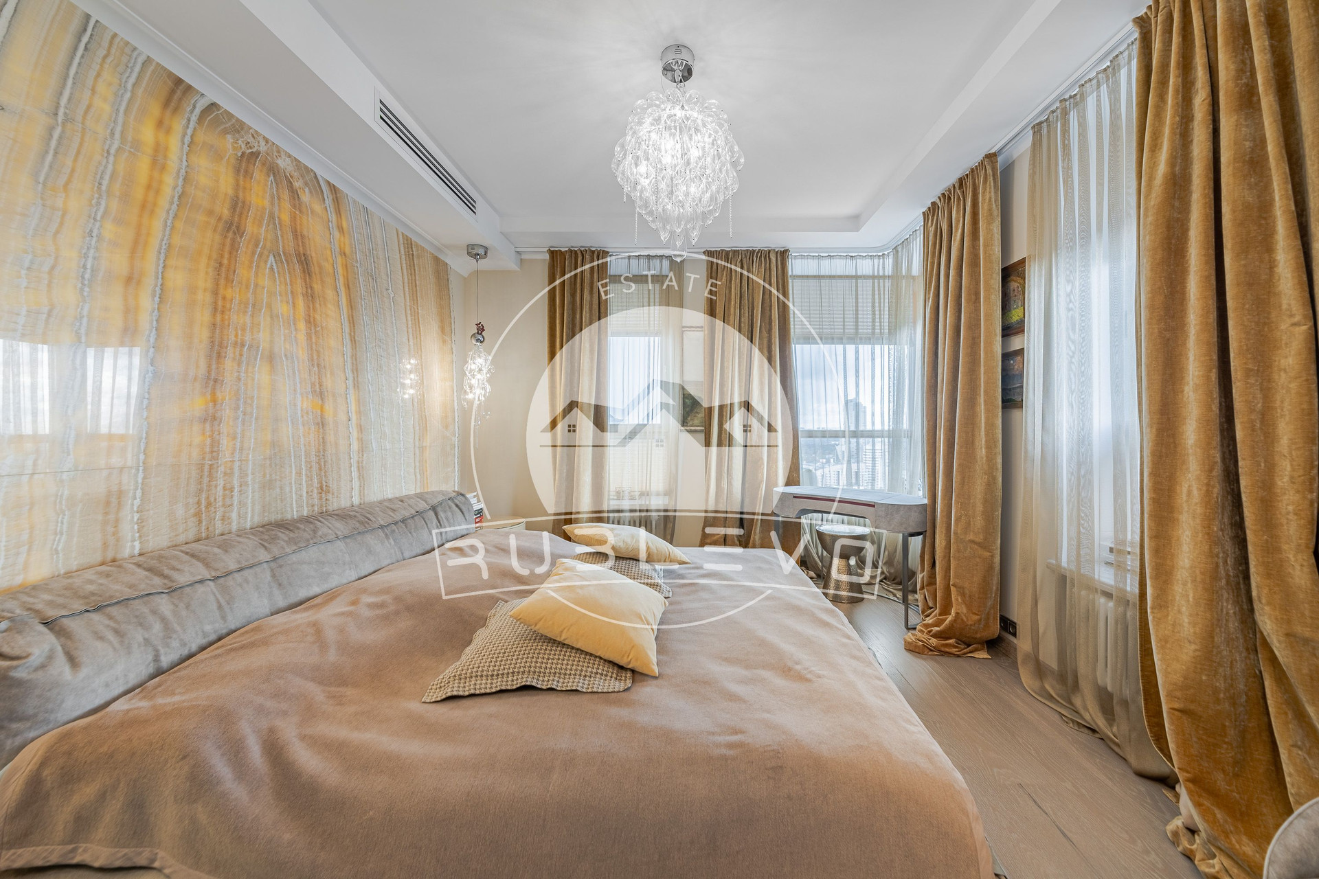Продажа 6- комнатной квартиры в 2 этажа, площадью 209.2 кв.м. Метро Народного Ополчения, 3 минуты транспортом. Улица Саляма Адиля, дом 2, к.1. ЖК Вилланж. Квартира предлагается с авторским дизайном, здесь гармонично сочетаются все элементы интерьеров, вместе они создают сбалансированное и уютное пространство. В отделке применялись дорогостоящие породы камня и дерева, квартира меблирована премиальной дизайнерской Итальянской мебелью, установлена встроенная бытовая техника, установлена система кондиционирования и приточно-вытяжной вентиляции, панорамные виды на 3 стороны света, имеется балкон.