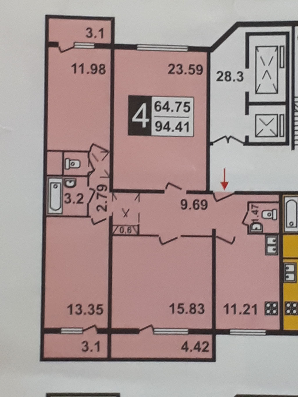 Общая площадь 94.41 м2