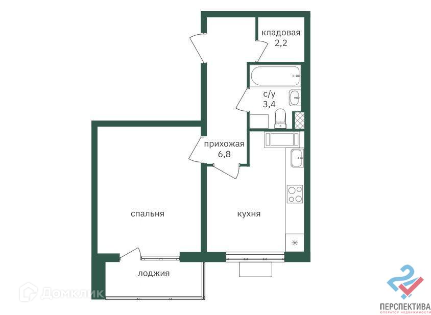 Общая площадь 38.2 м2