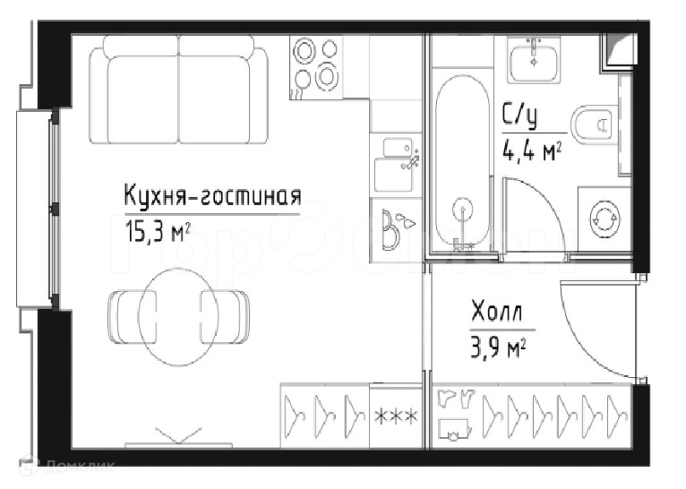 Общая площадь 20.1 м2