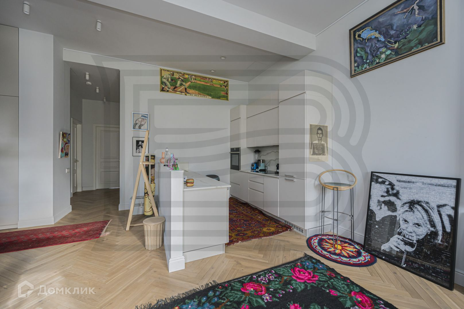 - светлая (4 больших окна) кухня -гостиная. Окна на Малую Бронную.
