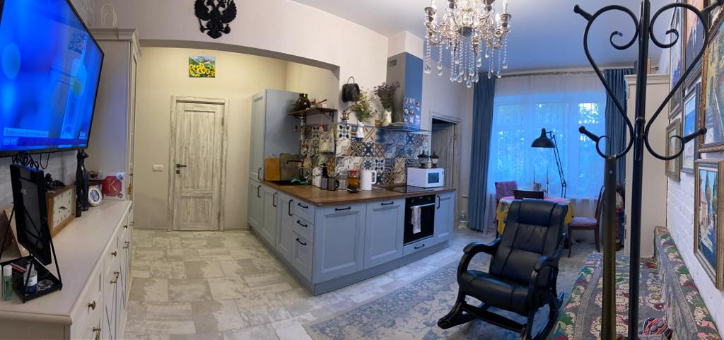 Евротрешка. Квартира полностью оборудована. Сделан капитальный ремонт. все новое :электрика, трубы, стены ,полы, двери и тд. В доме так же был кап ремонт. Под квартирой расположен цокольный этаж. Окна выходят на вишневый сад и храм. Очень тихий центр. Двор и подъезды под видеонаблюдением.