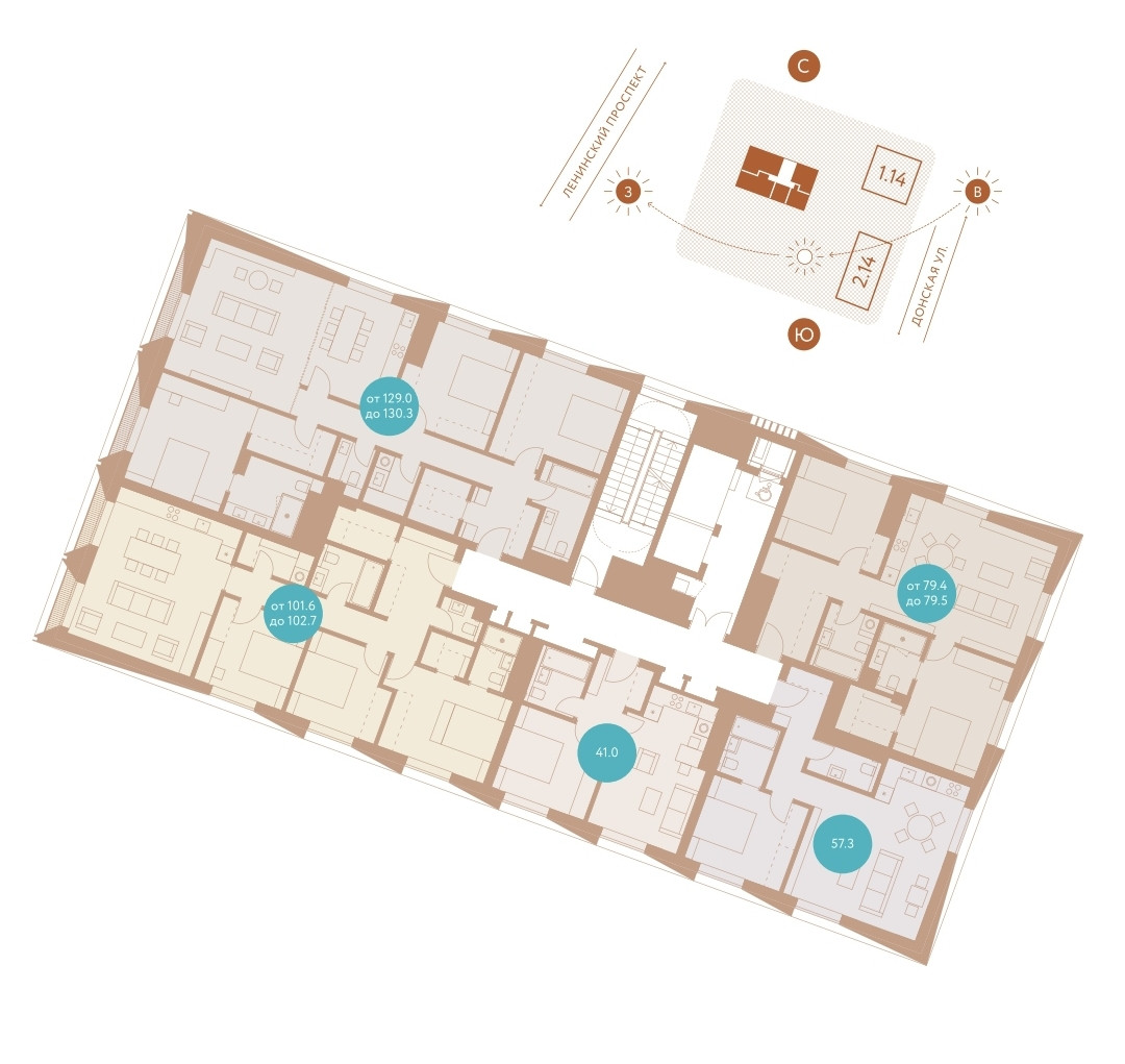 1-комнатная квартира, 40.9 м2, этаж 13 / 16, на продажу в Москве, Донская улица, 14к2