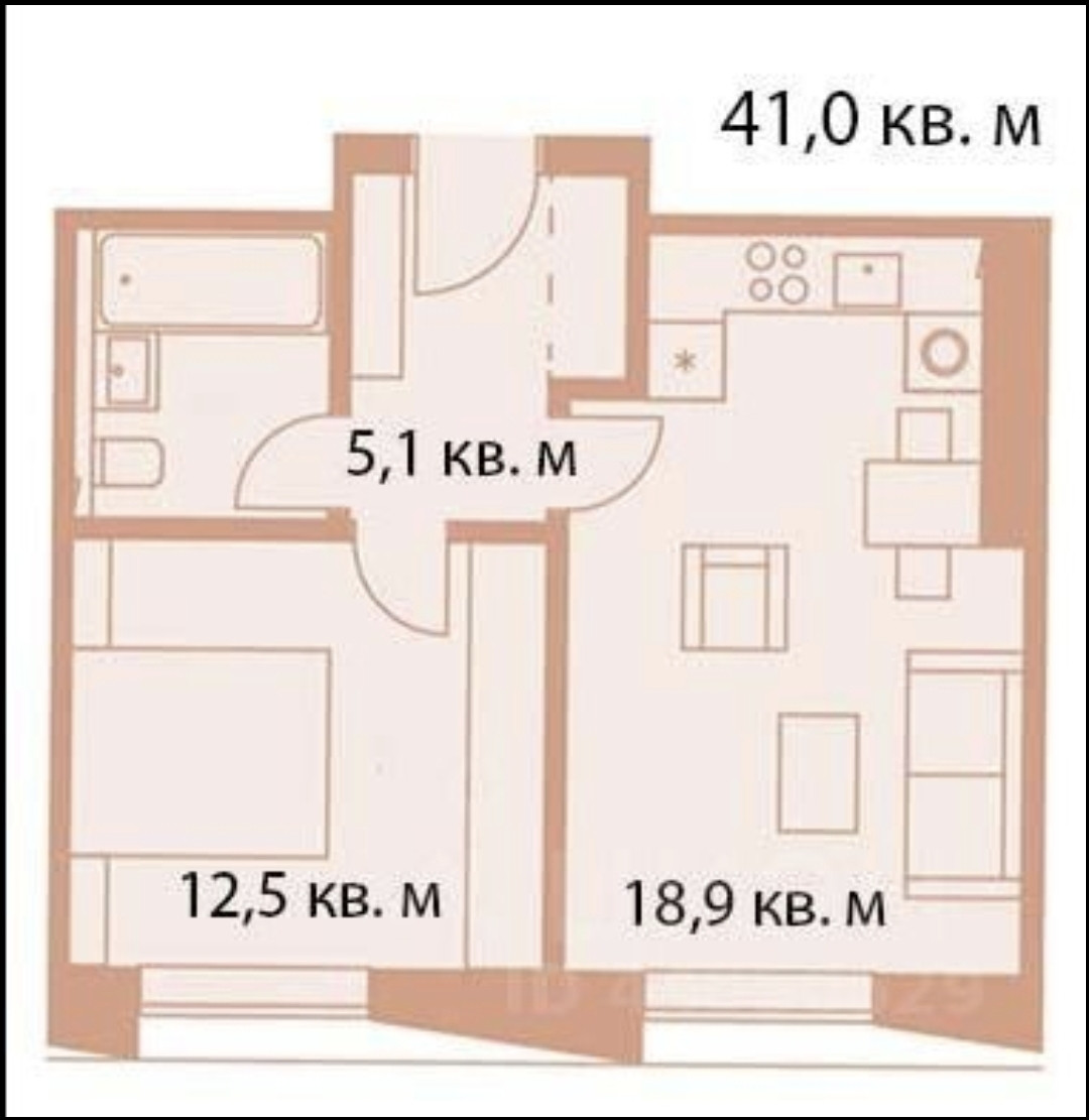 Общая площадь 40.9 м2