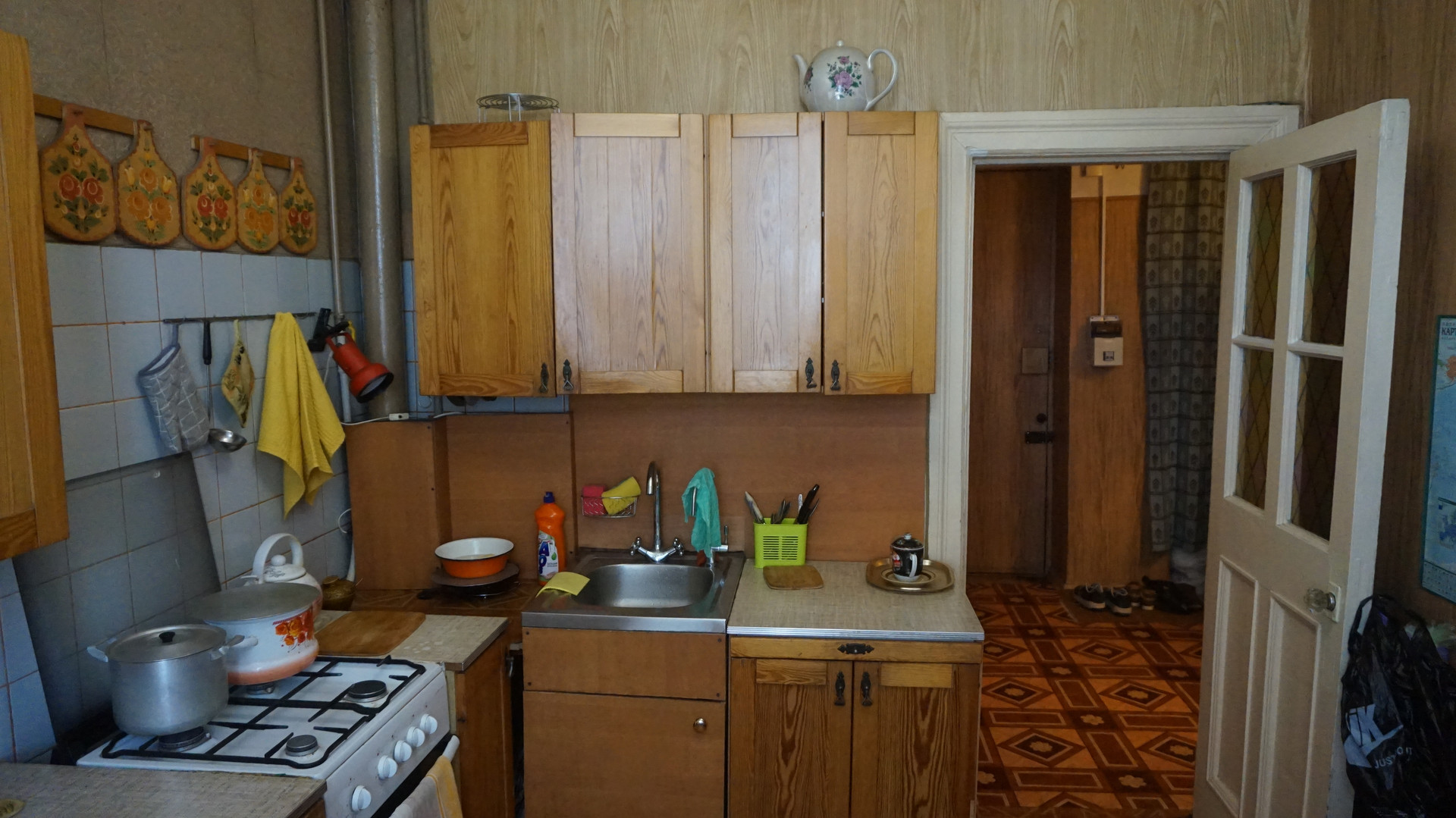 Квартира под ремонт, горячая вода газовая колонка новая, все окна заменены на пластиковые Rehau, пол дубовый паркет, недавно был установлен мощный бесшумный кондиционер. Дом после косметического ремонта.