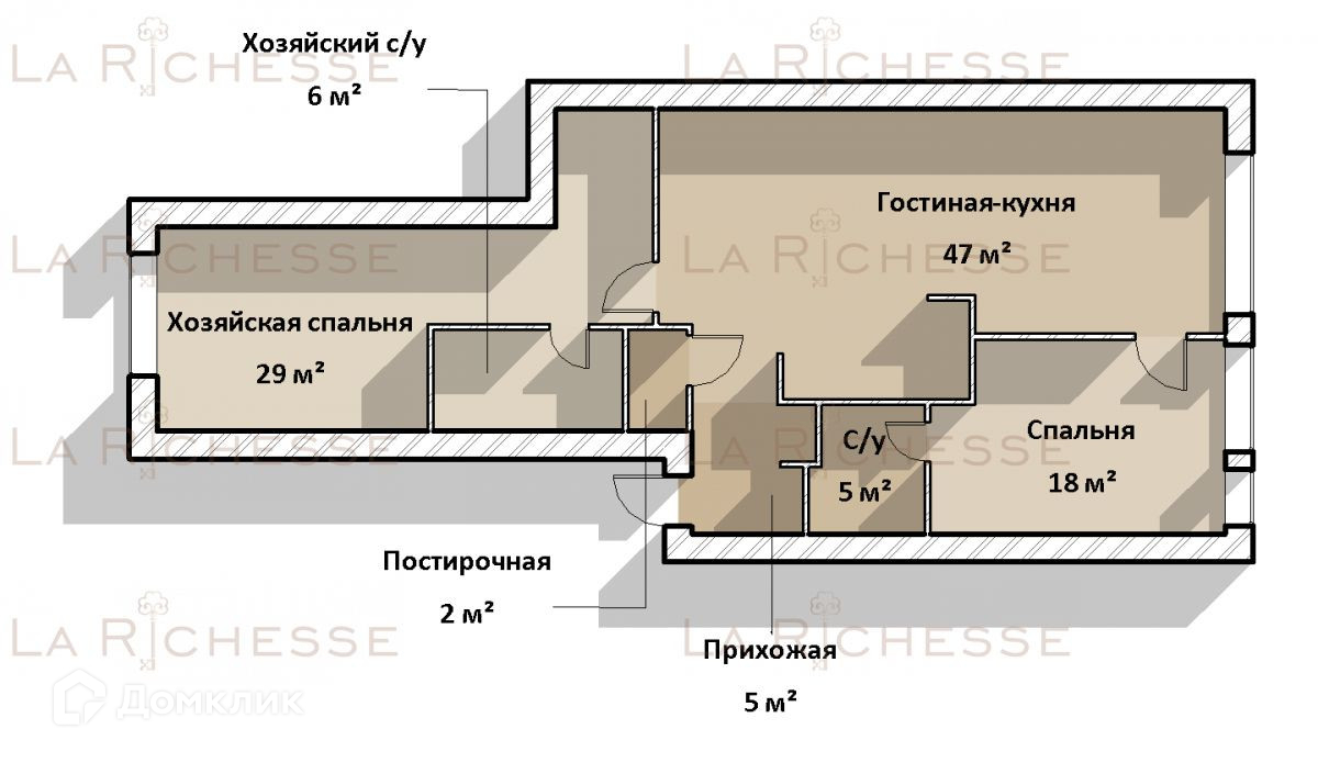 Планировка квартиры функциональна и продумана до мельчайших деталей: просторный холл со встроенным гардеробом, кухня, объединенная с зоной гостиной, мастер-спальня с гардеробом и санузлом, гостевая/детская спальня с собственным санузлом.