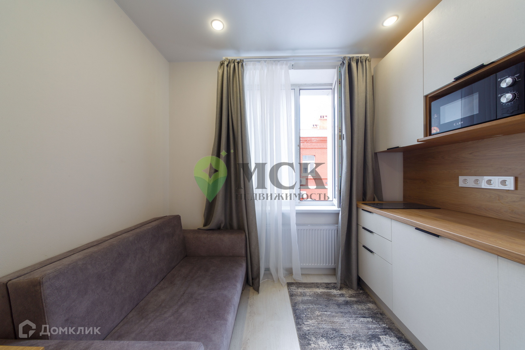 Комфортабельная студия с высокими окнами идеально подойдет как для аренды, так и для проживания.