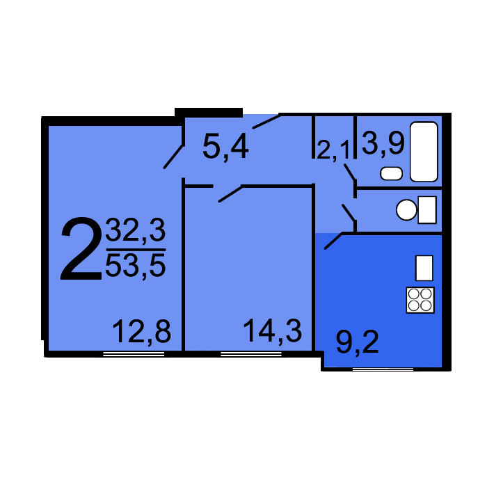 Количество комнат 2