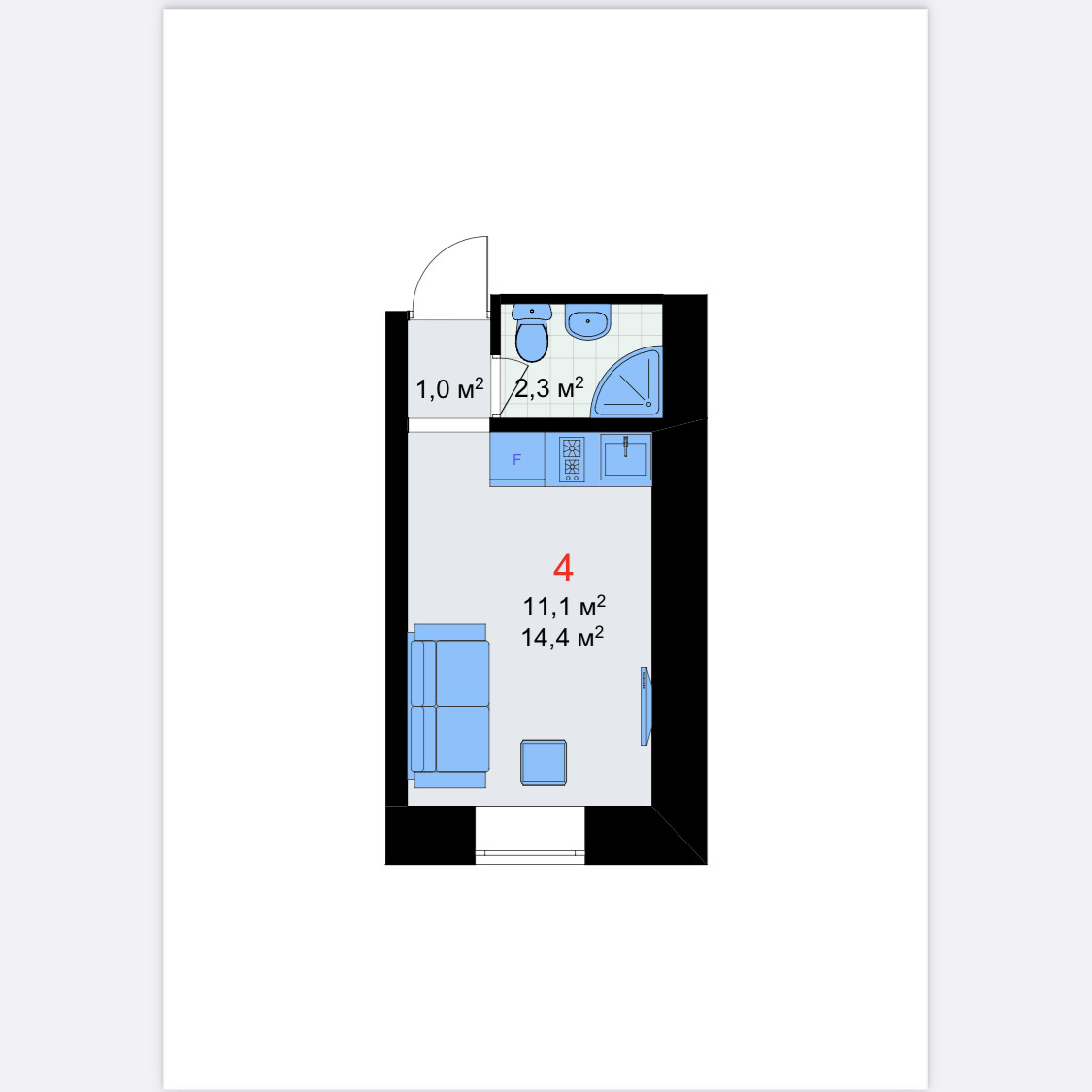 Общая площадь 14.5 м2