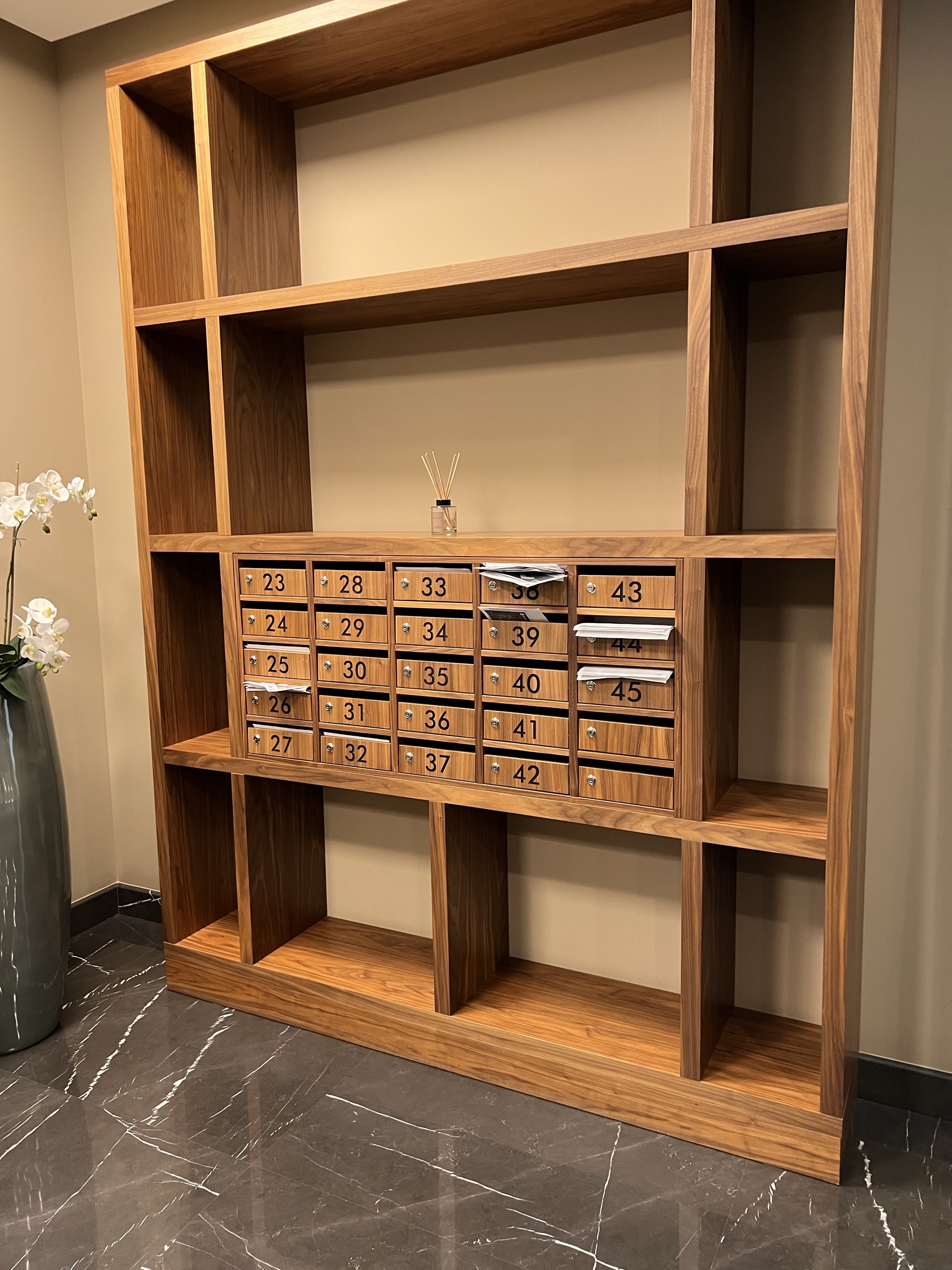 - Входные группы и холлы оформлены в четырех элегантных вариантах благородного классического стиля.