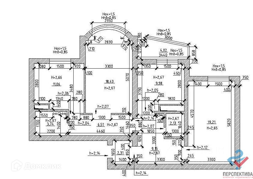 Высота потолков 2.8 м